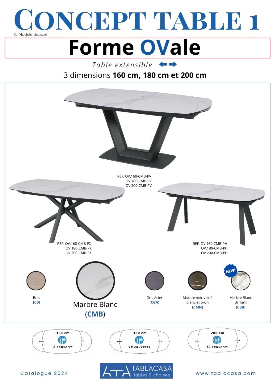 Plateau : Céramique marbre blanc 3mm sur verre trempé 8mm