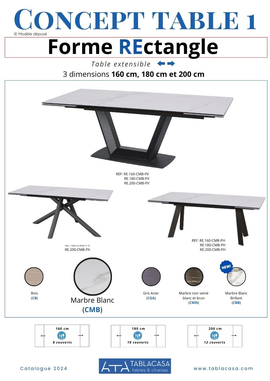 Plateau : Céramique marbre blanc 3mm sur verre trempé 8mm