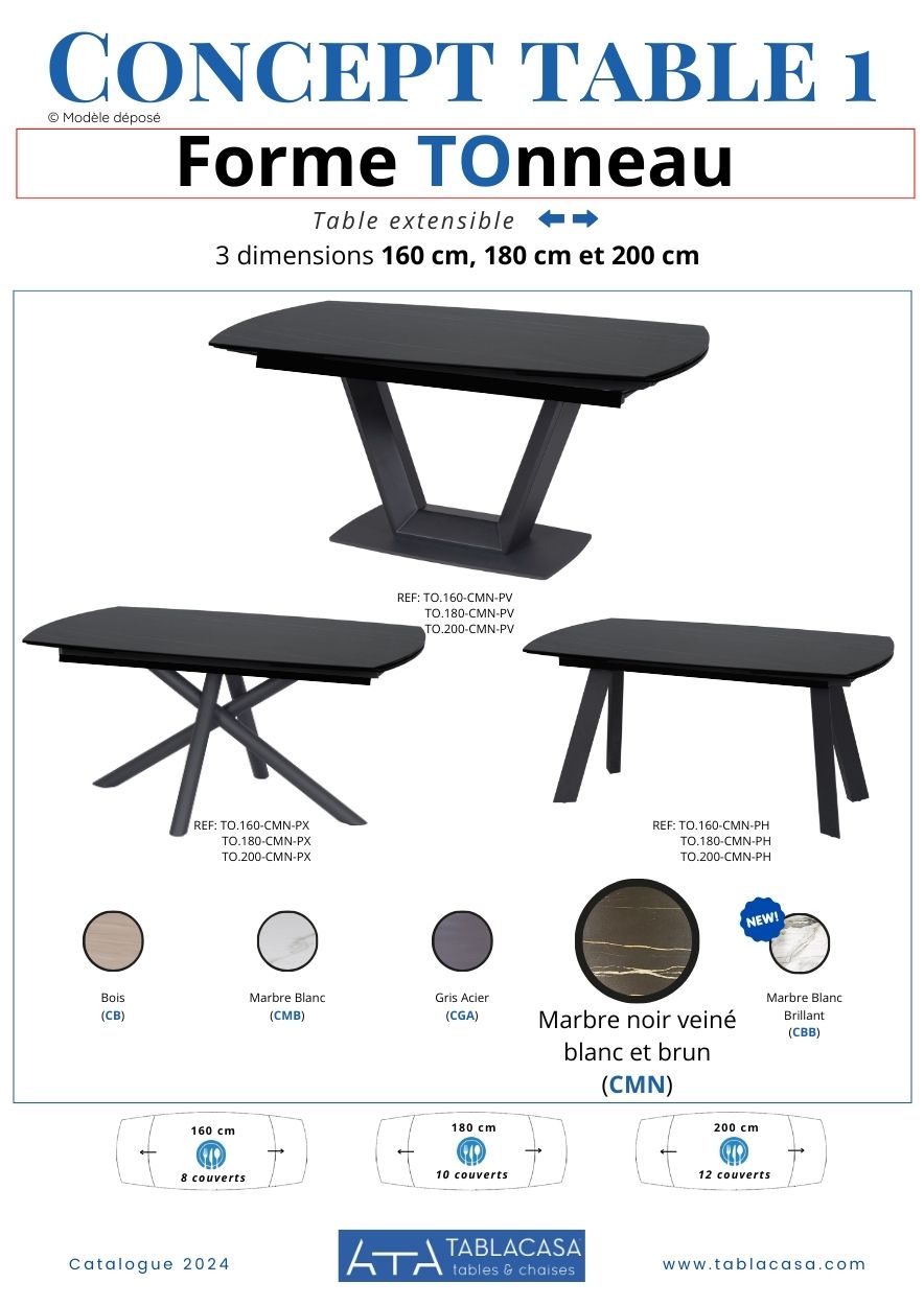 Plateau : Céramique marbre noir 3mm sur verre trempé 8mm